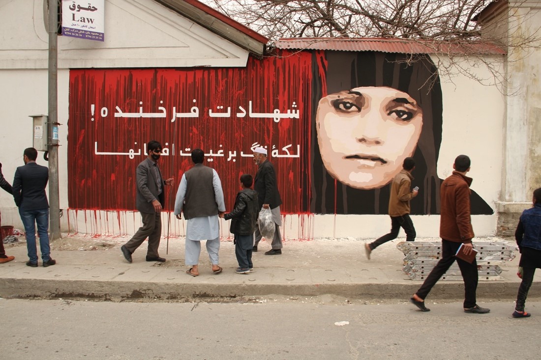 afghan The face of Farkhunda Malikzada, publicly lynched by an angry mob in 2015, confronts Kabul citizens near the place of her murder Farkhunda-Malikzada-Kabul-1