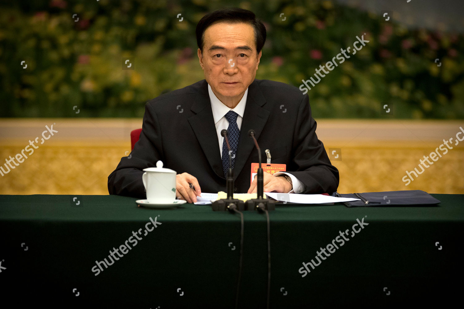Chen Quanguo, Communist Party secretary of China’s Xinjiang Uighur Autonomous Region, attends a group discussion meeting on the sidelines of China’s National People’s Congress (NPC) at the Great Hall of the People in Beijing, . China says heavily guarded internment camps for Muslims which it calls vocational training centers will “gradually disappear” if there comes a day that “society does not need” them