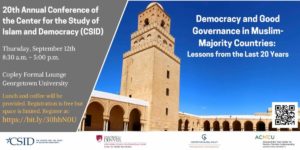 *Host: Nader Hashemi (University of Denver). Panelists: Ahmed Galloul, Secretary of State for Sports, Tunisia; Radwan A. Masmoudi, President of CSID; Daniel Brumberg, Georgetown University,